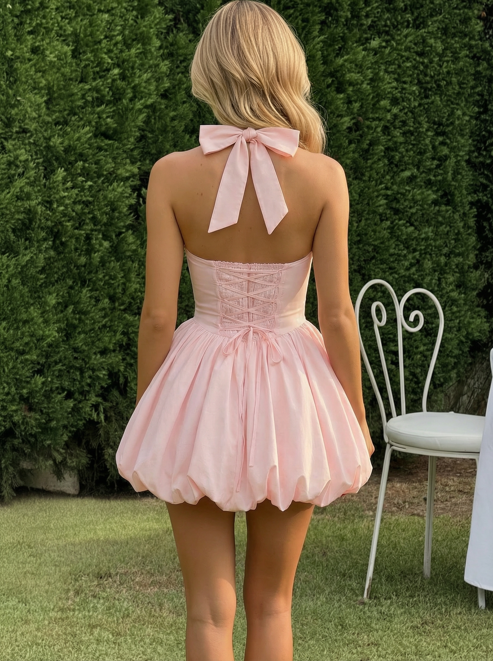 Pink Playful Halter Puffball Mini Summer Dress