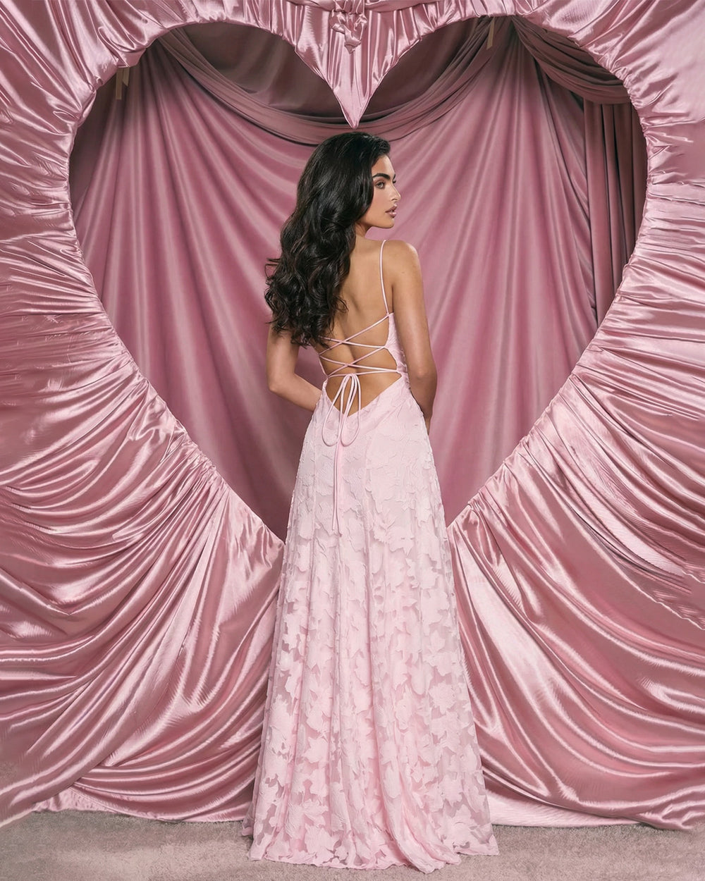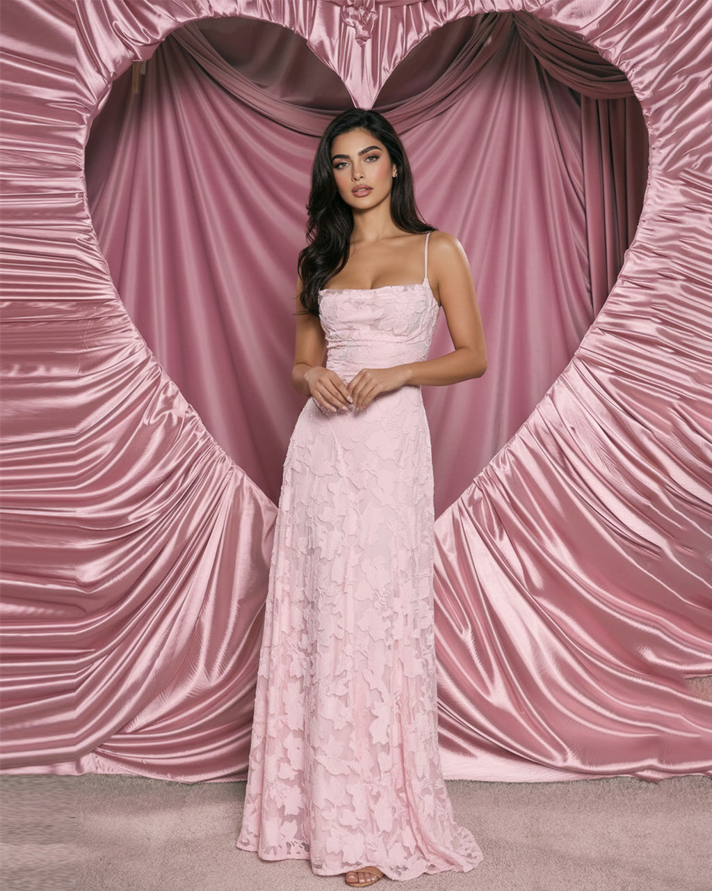 Red Satin Spaghetti Strap Maxi Dress With Rose Accents