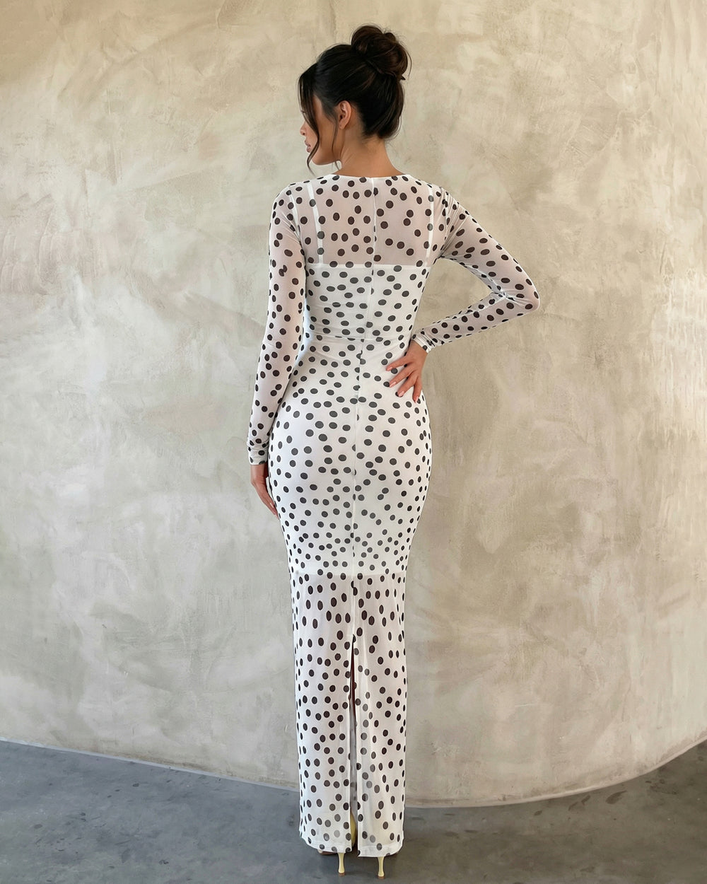 Sheer Mesh Polka Dot Bodycon Maxi Dress